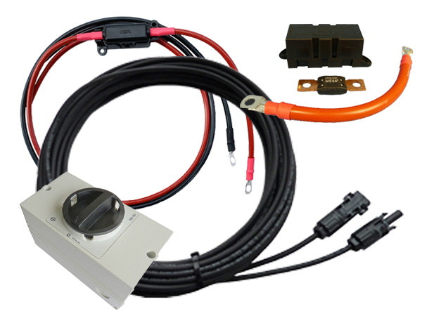The 450W Off Grid Solar Kit comes complete with all the essential cables, switches plus a 1500W 12V pure sine wave power inverter as standard, this can be upgraded for an additional cost.