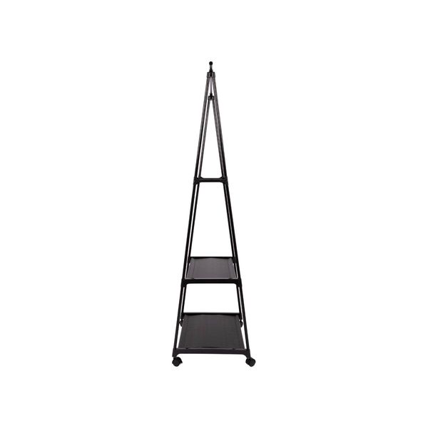 A lightweight black steel clothing rack. Easy to move around due to the wheels at the bottom. It also comes...