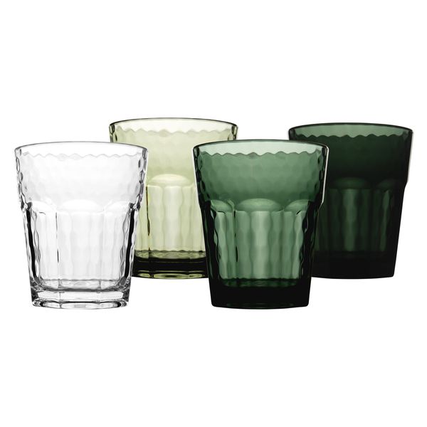 A set of wine/lemonade glasses. The 4 different shades give a playful and cozy effect. Scratch resistant, lightweight and dishwasher...