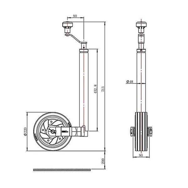 The Ultimate Caravan Jockey Wheel from Kartt is designed for use with caravans and trailers. This model features a shaft diameter of 48mm and a 220 x 65mm wide wheel.