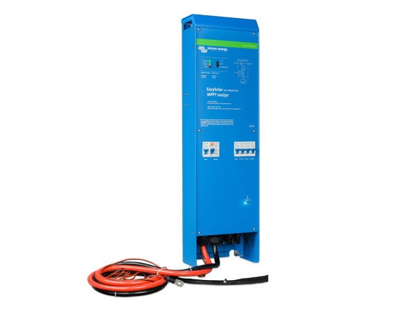 The Victron Energy EasySolar combines a MPPT Solar Charge Controller, an inverter/charger and AC distribution in one enclosure. The product is easy to install, with a minimum of wiring.