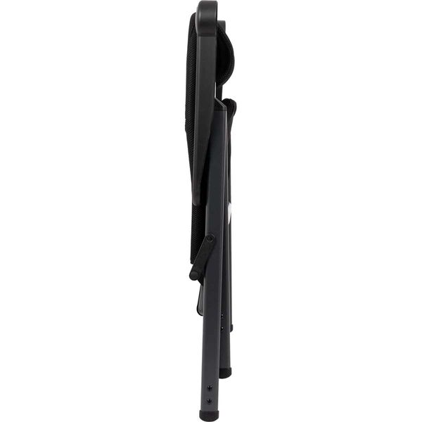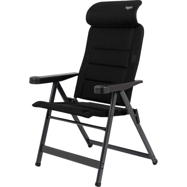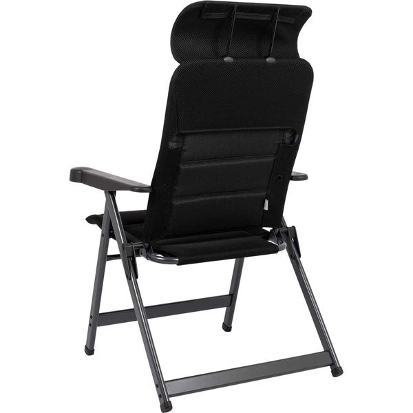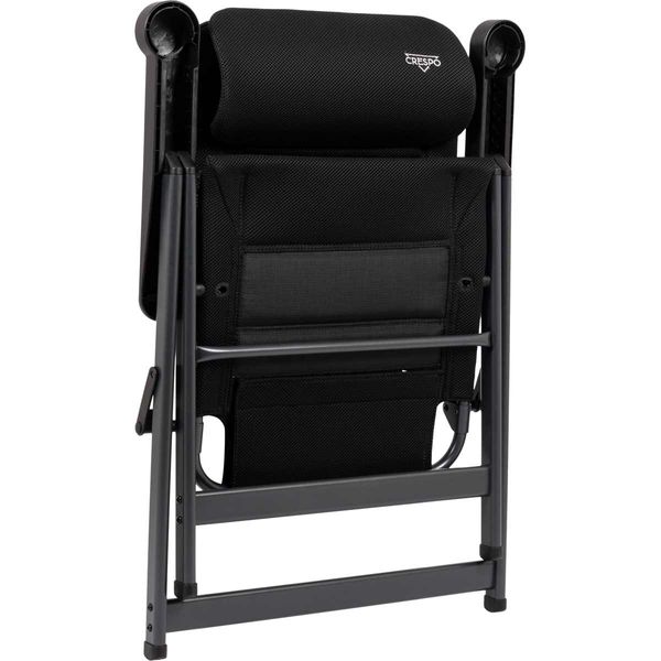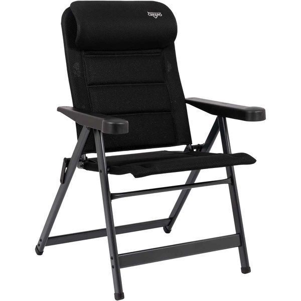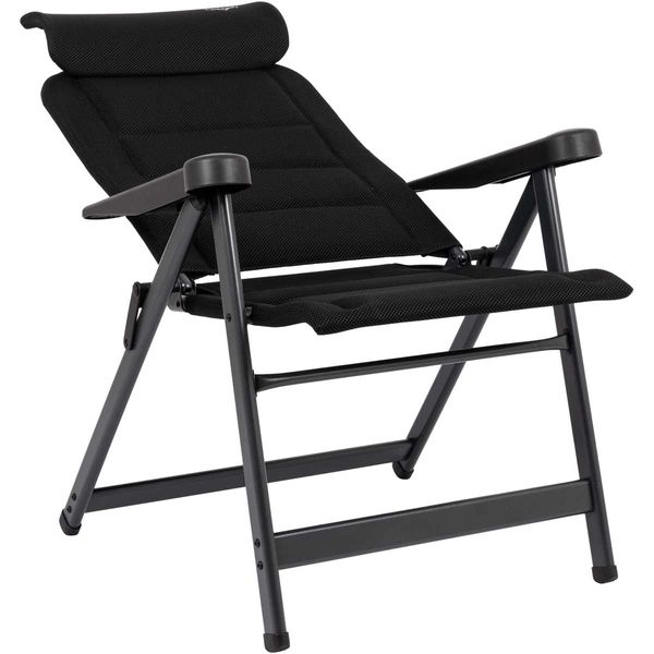 A unique and highly compact reclining chair with an adjustable headrest. The chair is equipped with padded 3D fabric. The comfortable padding of this fabric is extra breathable and, due to its open-cell structure, does not retain moisture. As a result, the chair dries much faster than chairs with traditional foam filling. This chair has a lower seat and a shorter backrest, making it particularly suitable for people with shorter legs. It offers maximum comfort with its 7-position adjustable backrest. Both the backrest and armrests are ergonomically shaped. The chair features an anodised H-frame for extra stability and strength. Due to its unique design and lower seat, this chair is compact and easy to carry.