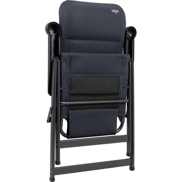 A luxurious reclining chair. This chair offers maximum comfort with its 7-position adjustable backrest and padded 3D fabric. The comfortable padding of this fabric is extra breathable and, due to its open-cell structure, does not retain moisture. As a result, the chair dries much faster than chairs with traditional foam filling. Additionally, both the backrest, seat, and armrests are ergonomically shaped. The chair features an anodised H-frame for extra stability and strength. When folded, this chair is compact and, therefore, easy to carry.