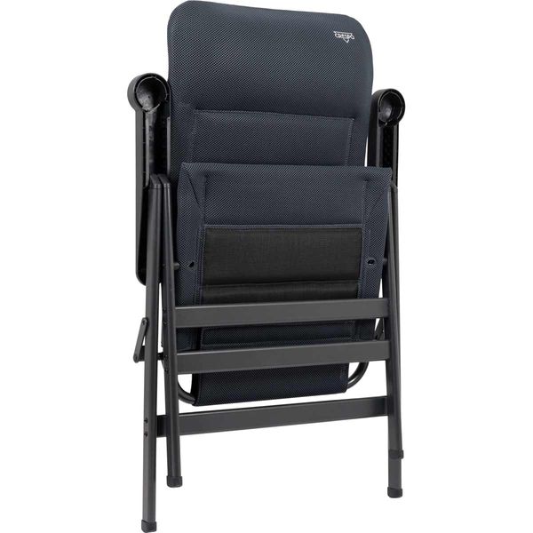 A spacious and luxurious adjustable chair. This chair is extremely suitable for 'larger' persons. This chair provides maximum comfort thanks to its 7 position adjustable backrest and the padded 3D fabric. The comfortable filling of this fabric is highly breathable and does not retain moisture due to the open cell structure. This allows the chair to dry out much faster than those with a traditional foam filling. In addition, the backrest, seat and armrests are ergonomically shaped. The chair has an anodised H-frame for extra stability and strength. When folded, this chair is compact and easy to carry.