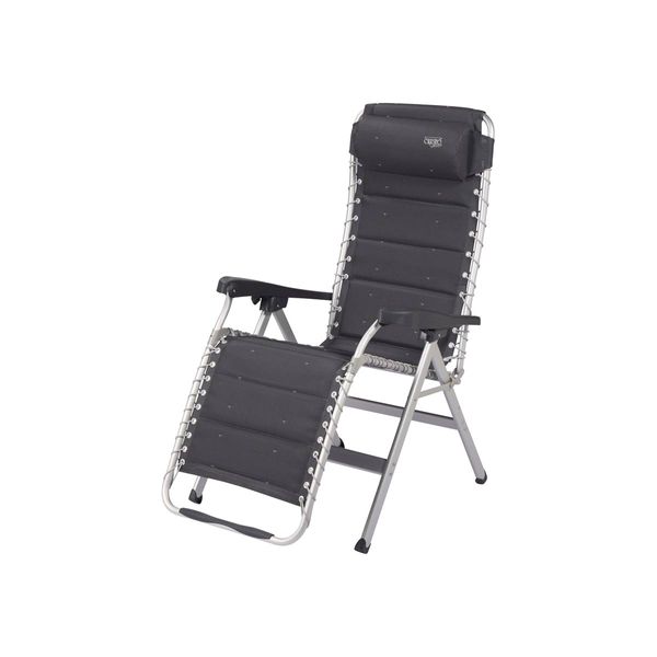 An extremely luxurious lounge chair with pillow. The most comfortable lounge chair on the market. This chair offers maximum comfort because the seat is infinitely adjustable, has a pillow and the upholster is attached by means of elastic. The comfortable filling of this fabric has an open cell structure so that it retains no moisture. Because of this the chair dries faster than other chairs with a traditional foam padding. Both the backrest and the armrests are ergonomically shaped and the seat is equipped with a brake system to fix the seat in any position. The chair has an anodized H-frame for added stability and sturdiness. The chair has an extra wide (54 cm), and extra deep (55 cm) and extra high seat (50 cm). When folded this chair is compact and easy to carry in the provided storage bag.(LxWxH: 95x72x12 cm). Maximum load bearing capacity: 130 kilogram.