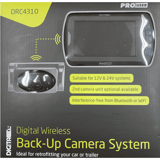 The camera activates automatically when reversing, has a built-in 4.3 LCD display with distance indicator and features 6 IR LEDs for better night vision and 2.4 Ghz digital wireless transmitting.