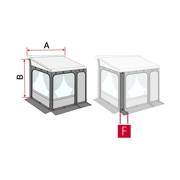 Fiamma Privacy Room enclosure designed for use on motorhomes or caravans with straight walls. This enclosure is made up of a 300cm front panel and a 20cm infill panel to accommodate F80s or F65L awnings that are 320cm in length. It also has two side panels which are 245-280cm from the ground. For longer awnings, the relevant front panel extension can be ordered to extend this enclosure.