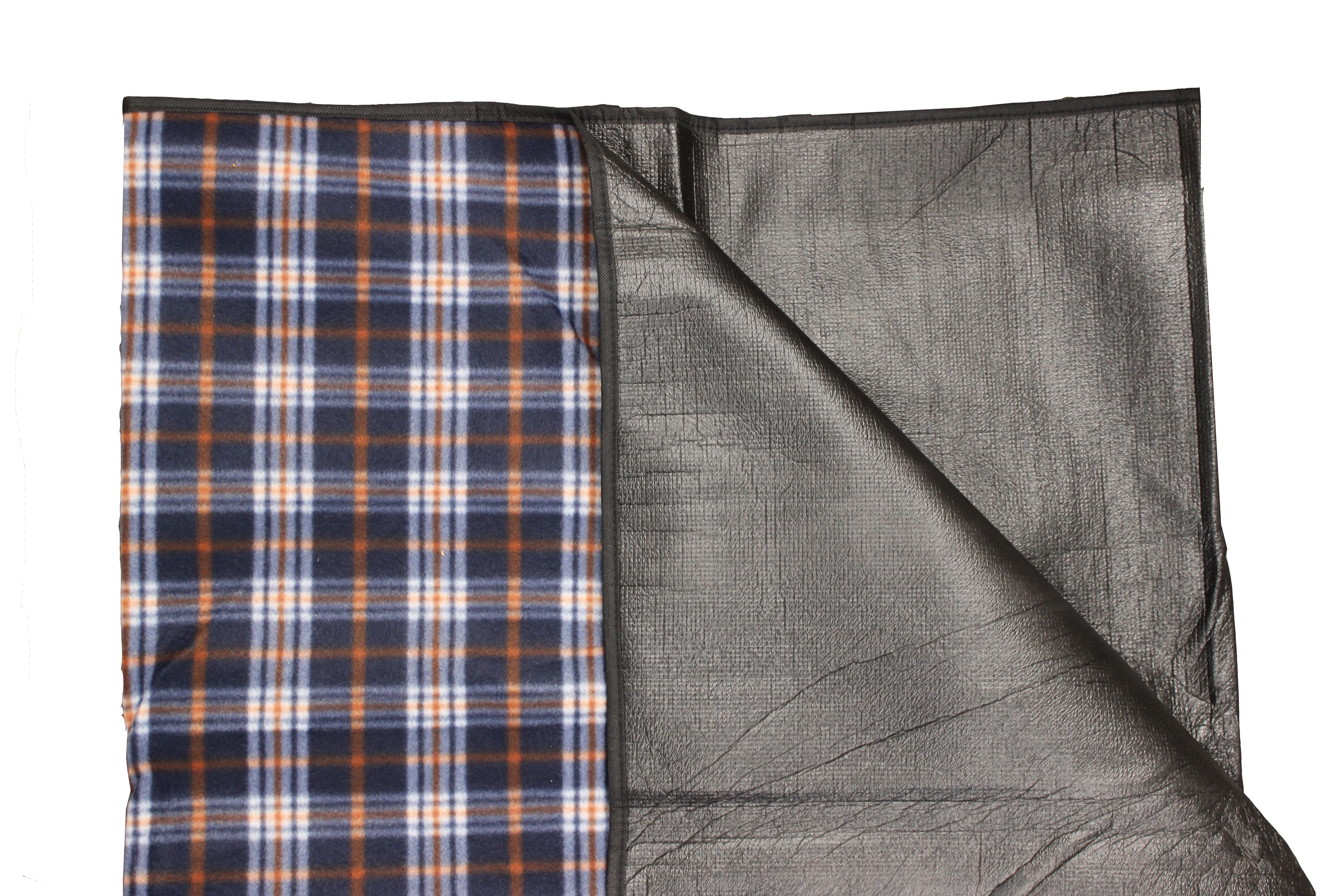 Blue, White and Orange Patterned fleece carpet with a plastic back specially designed to fit the Cubo Breeze Awning living...