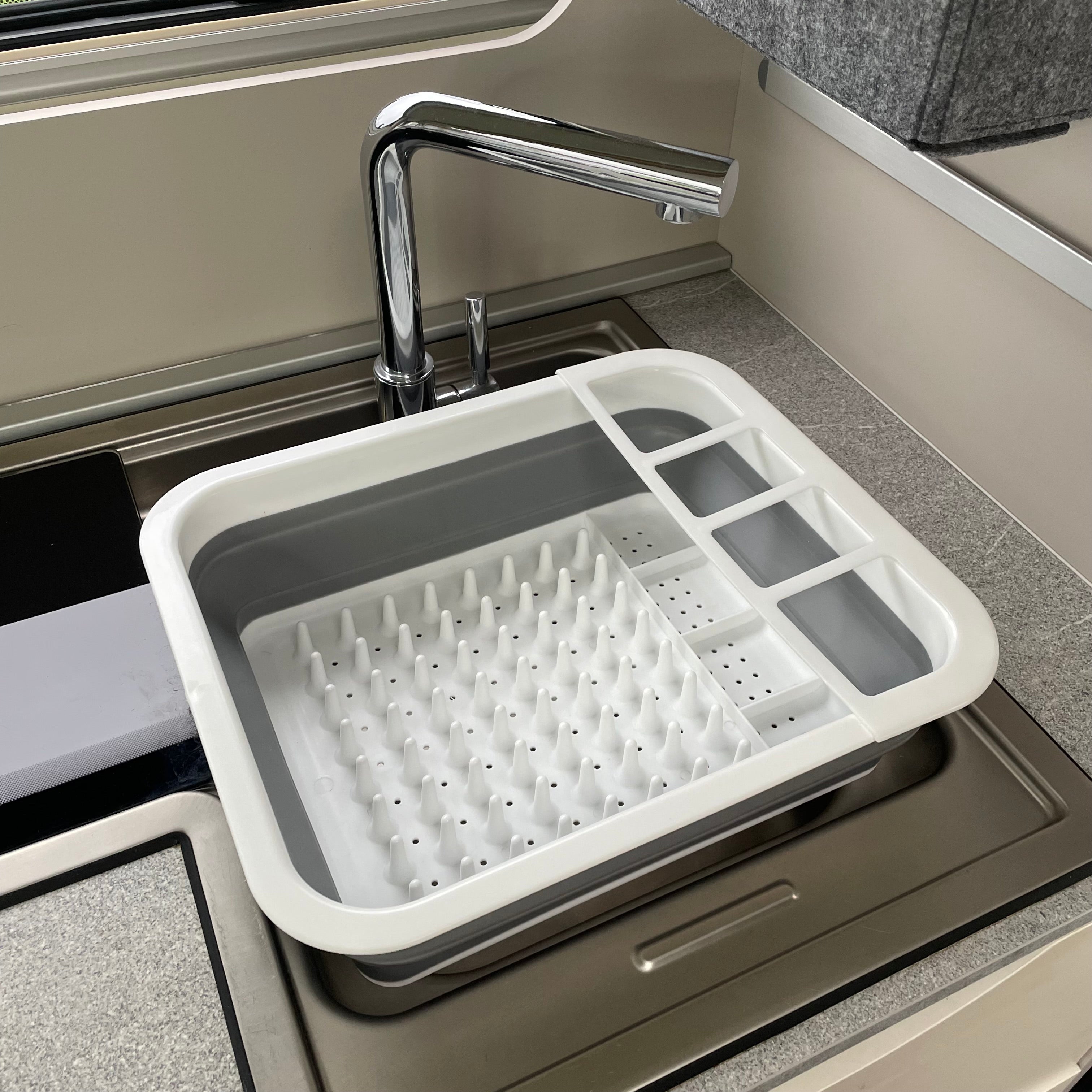 Effortlessly manage your kitchen clean-up with our innovative Collapsible Dish Drainer. Designed to streamline your dish drying process, this versatile drainer offers convenience, functionality, and space-saving features that are perfect for Campervans, Carvans and at home!