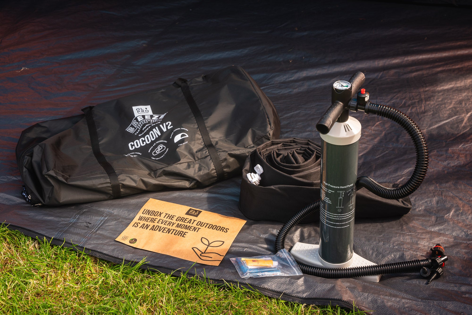 What's Included? Manual Pump, Pegs, Guy Ropes, Storm Straps, Tunnel Throw Over Straps, Carry Bag, Repair Kit