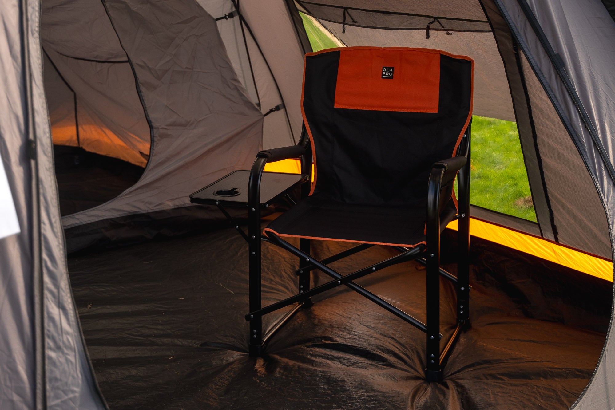 The OLPRO Directors Chair – style, comfort, and durability for your outdoor adventures. Ideal for holidays away on the campsite, beach visits, festivals and socialising in the garden, the Directors Chair is versatile for every outdoor occasion.