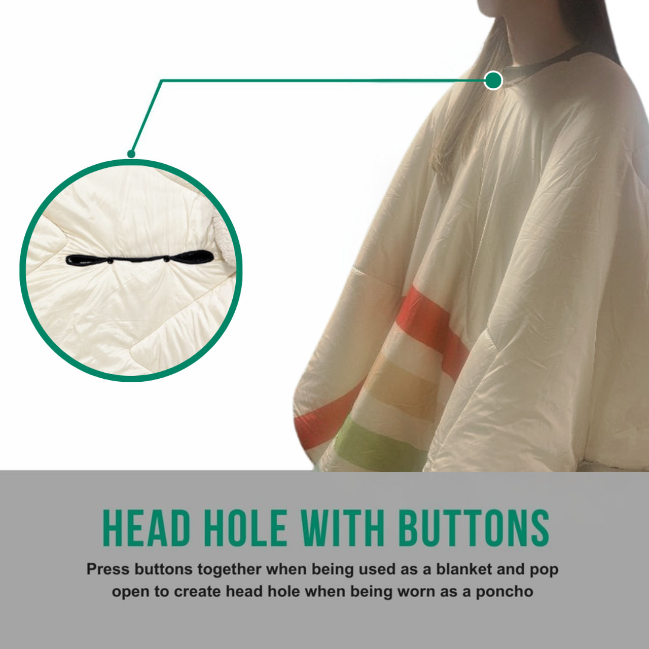 The OLPRO Blanko is versatile and can be worn in multiple ways. Our Blanko features loops and clips at both ends, allowing you to rock it as a cape or snap it into sleeves for added flair. With its sleek design and central opening for poncho-style wear. You can also wear your OLPRO Blanko as a normal blanket so you can cosy up in your camping chair by the campfire and watch the stars.